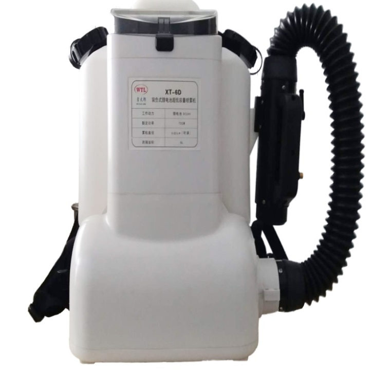 主要由高速电动机、电源开关、药箱、流量开关、喷洒总成总和机壳等组成。用蓄电池作为机器动力,无废气,噪声低,操作简单方便,机器重量轻,喷幅宽,射程约10米远,雾粒直径在30微米,适合于室内外空间喷雾。