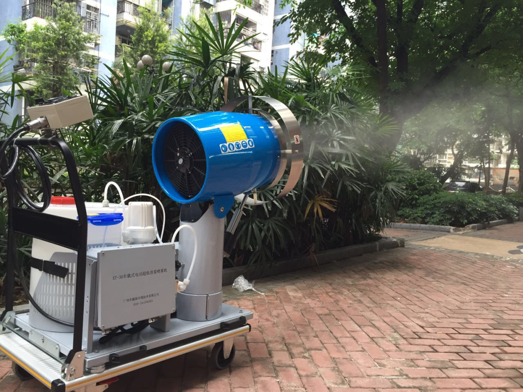 喷雾机由蓄电池电源组、控制器线控器、离心雾化风机喷雾角度调整机构、定量泵、储液桶等组成。 机器使用无刷电机,噪音低,工作效率高,雾粒直径90%以上小于30微米,射程20米以上,穿透性好,重量轻,喷雾流量精准可调,药剂利用率高、污染小,应用于城市大面积的病媒害虫防治等领域。
